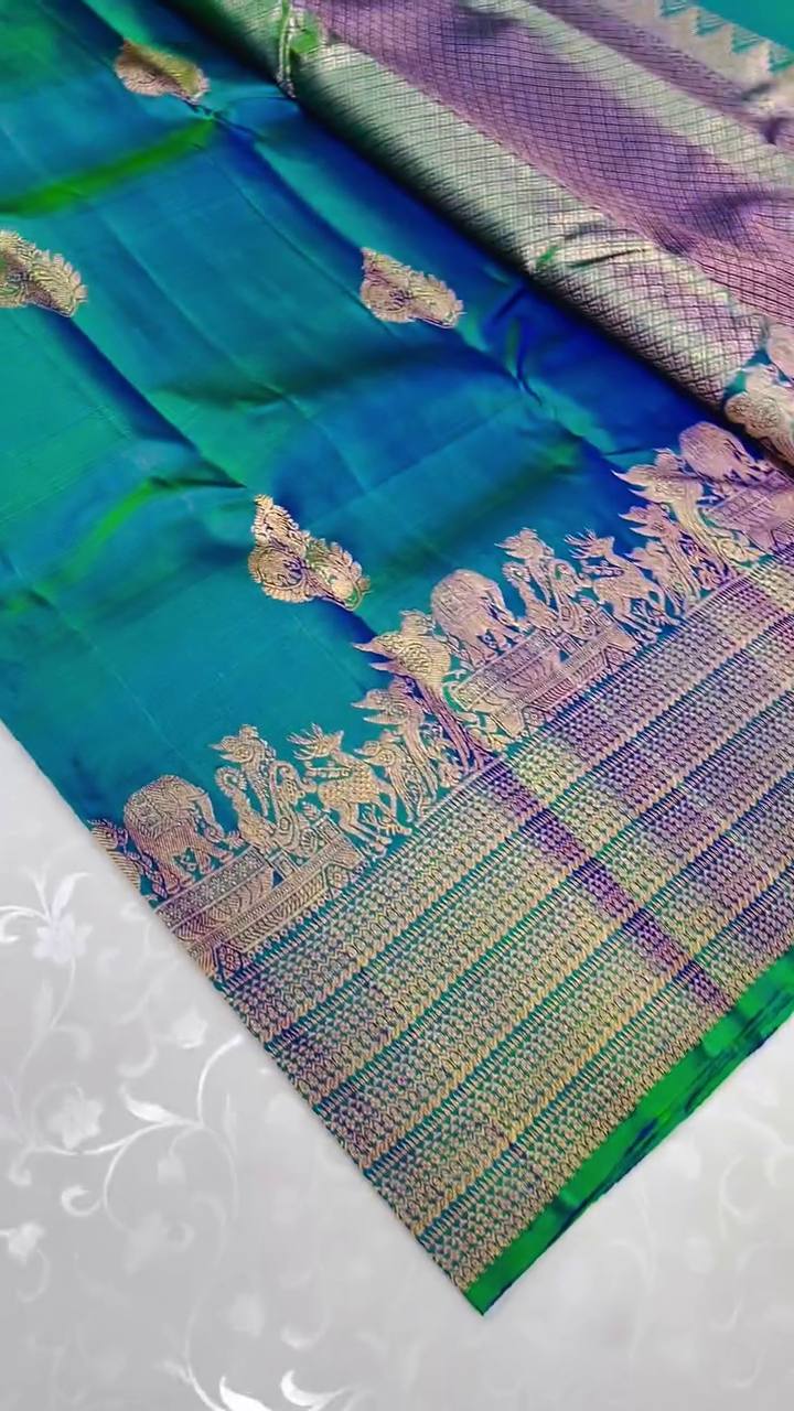 π Premium Kanijivaram Soft Silk Sarees with Copper zari jaal weaves all over the body, having rich zari woven pallu and paired with Plain running Blouse