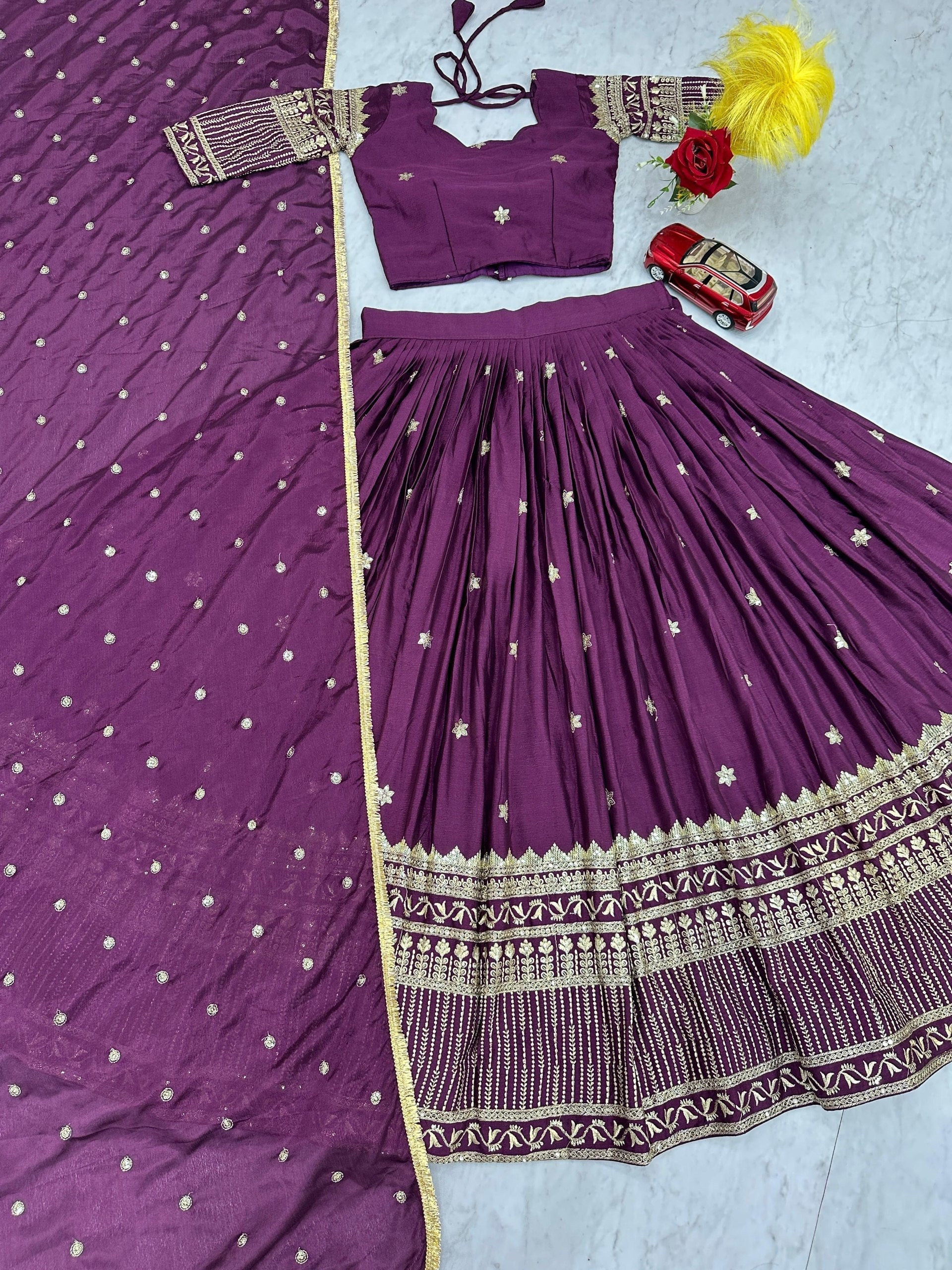 Captivating Purple Chinon Embroidered Lehenga Choli
