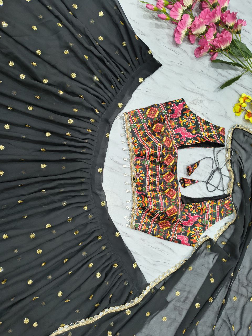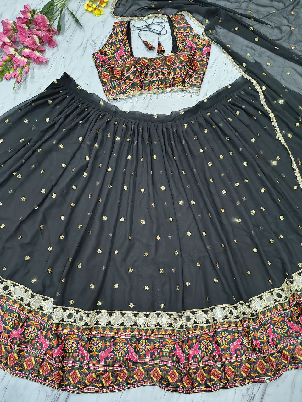 Designer Black Color Georgette Mirror Work Lehenga Choli