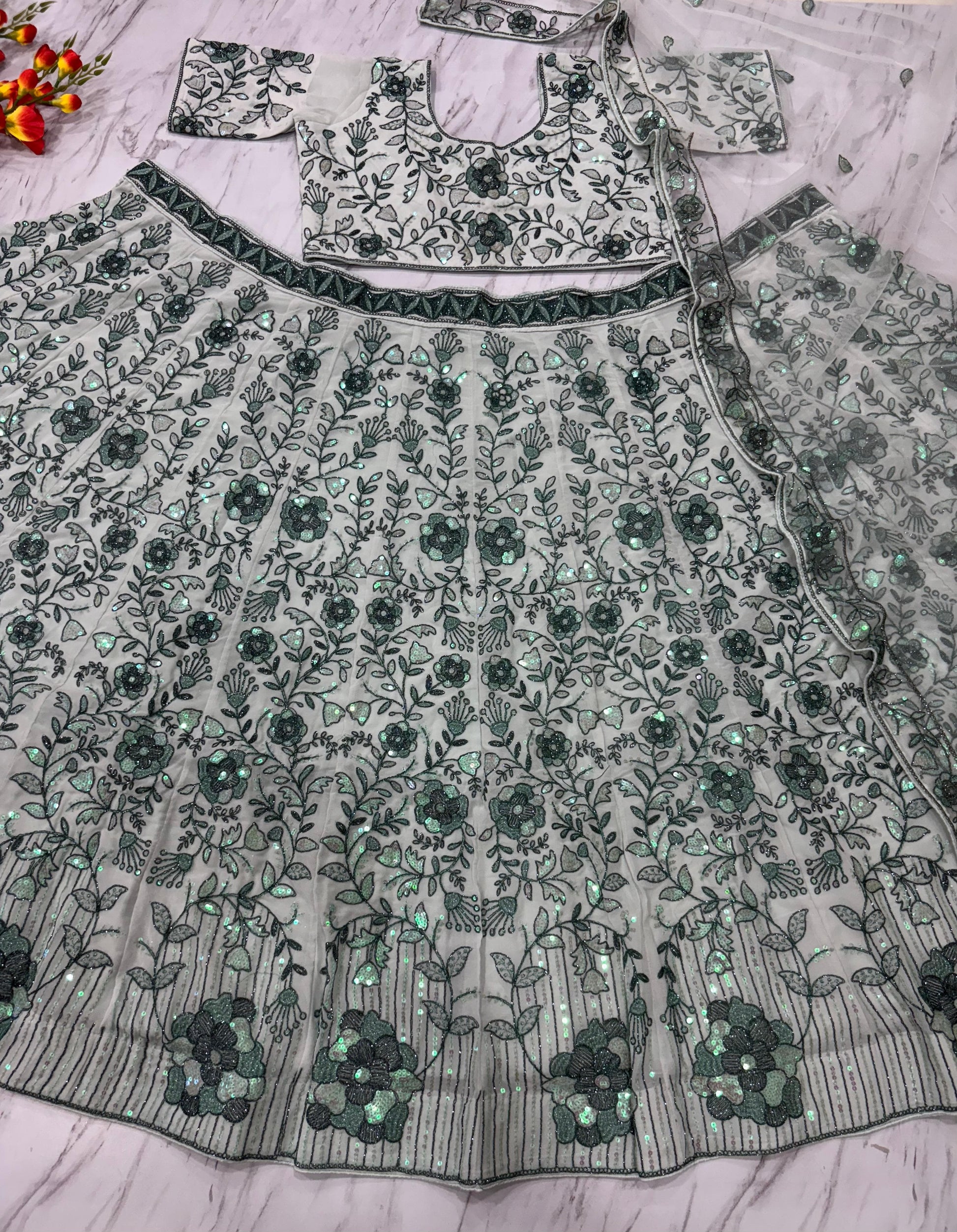 Lehenga : Premium Faux Georgette Embellished With Beautiful Thread Embroidery , Dori Work With Beautiful Heavy Sequins Work With Heavy Cancan And Canvas With Double Inner Covering With 3.5 Mtr Flair( Semi Stitched. )