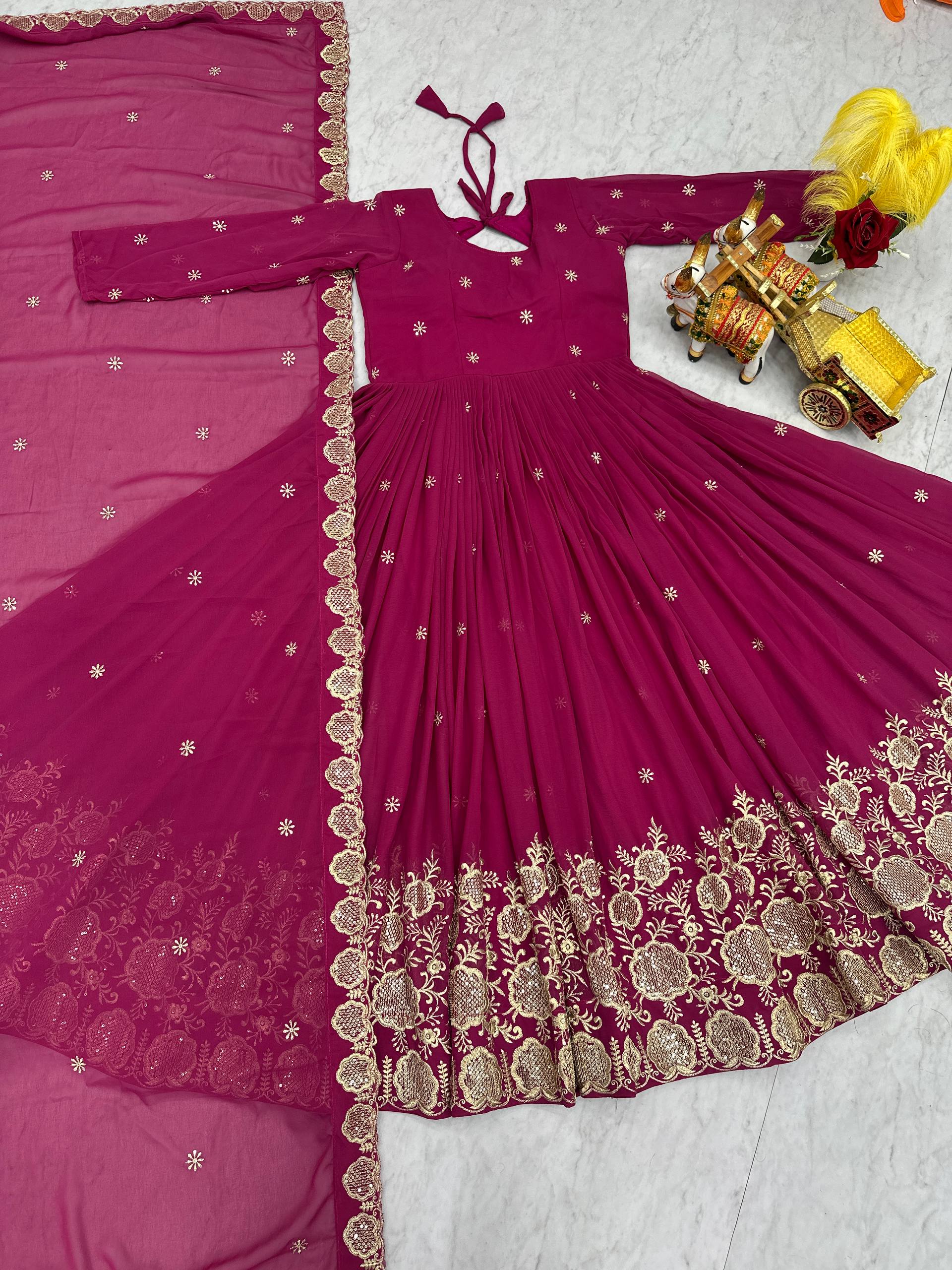 Lovely Purple Fox Georgette with Heavy Sequence Work Gown
