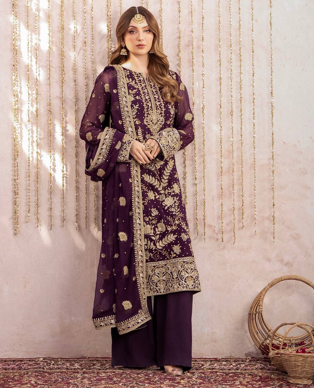 Trendy Purple Fox Georgette Sequence Work Palazzo Suit